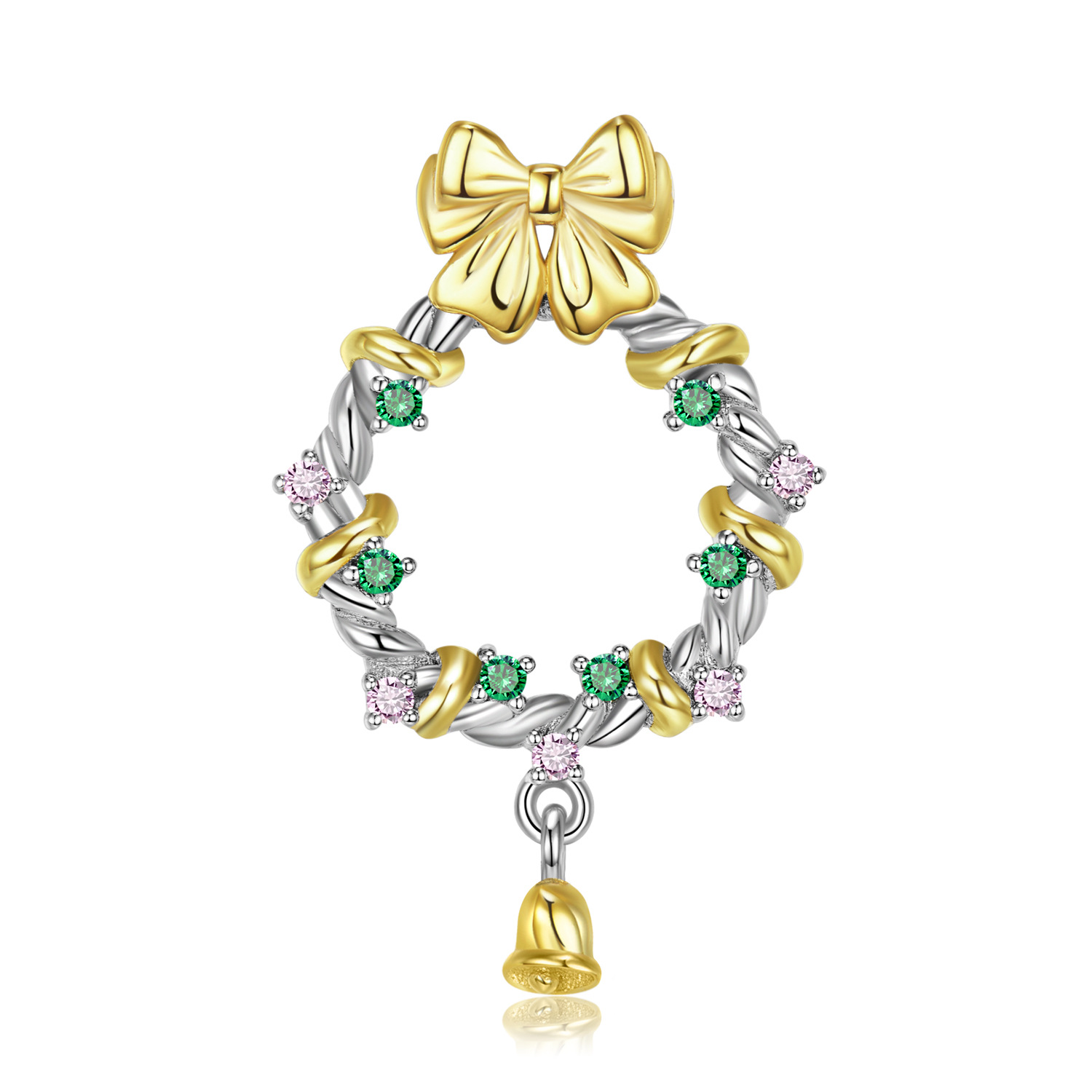 Product: Wholesale 925 Sterling Silver Crystal Christmas Wreath Pendants 90200058.