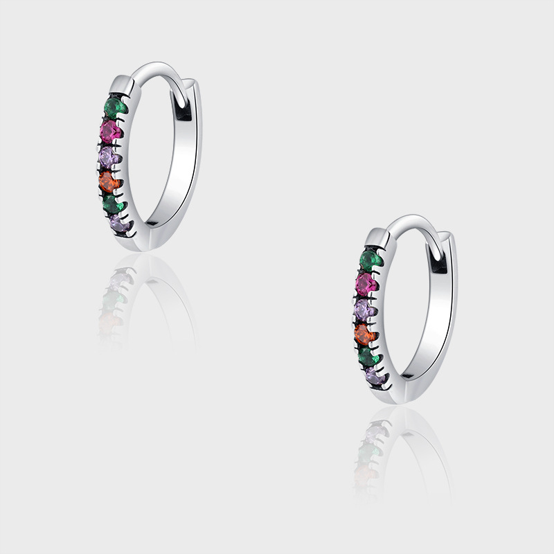 Product: Wholesale 925 Sterling Silver Rainbow Zirconia Hoop Earrings 60200051.
