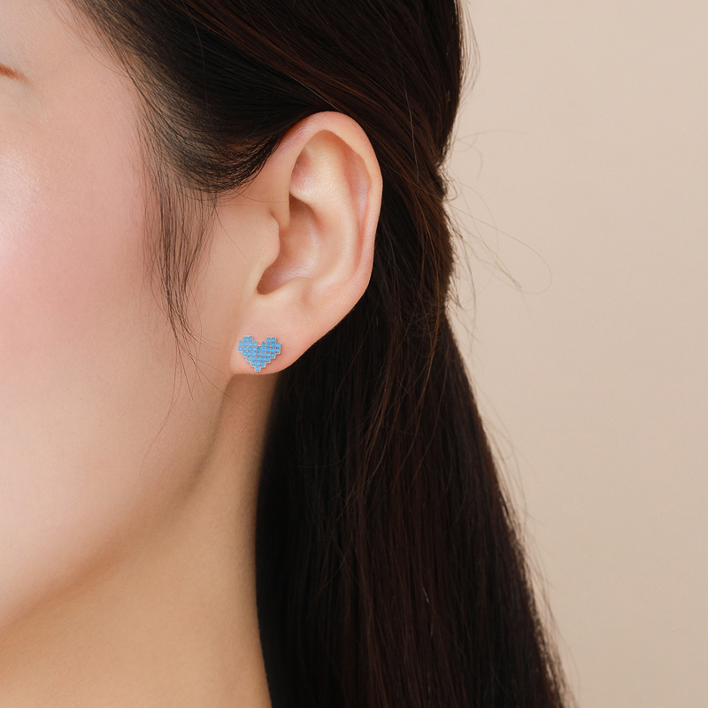 Product: Wholesale 925 Sterling Silver Turquoise Heart Stud Earrings 40200210