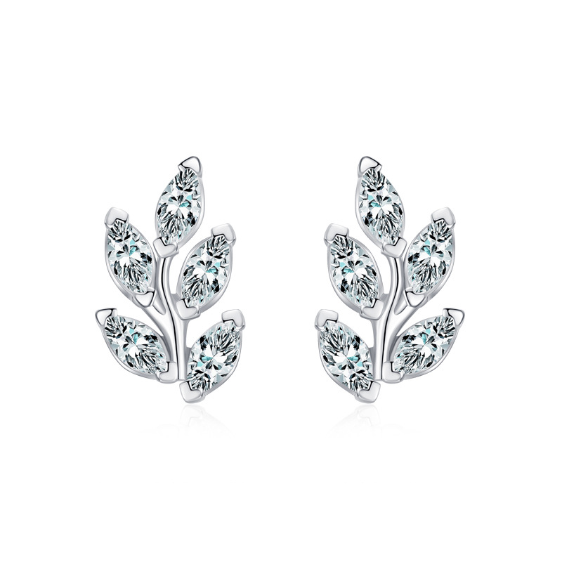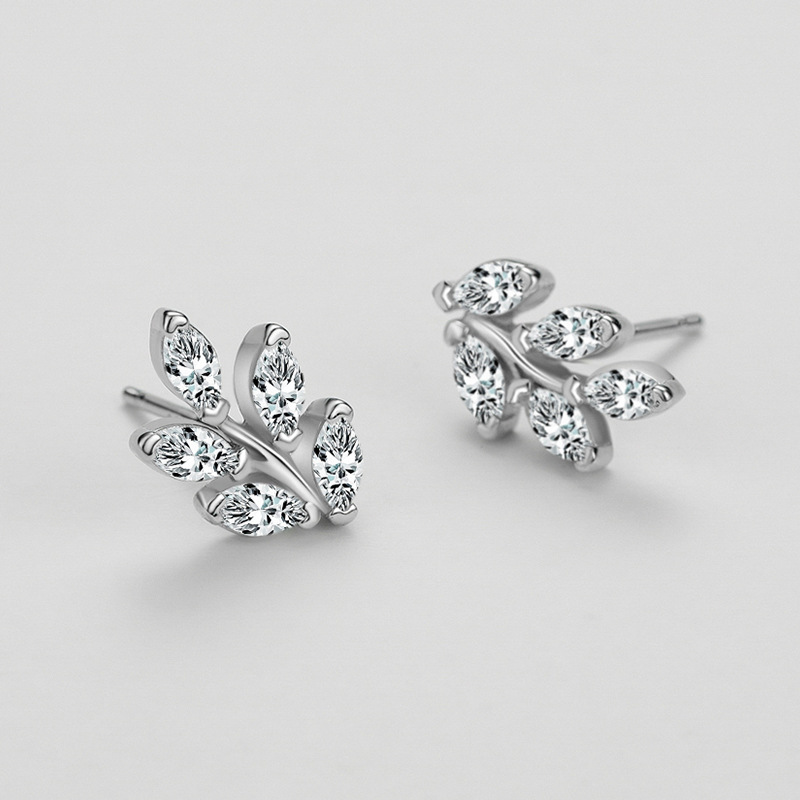 Product: Wholesale 925 Sterling Silver Zirconia Leaf Stud Earrings 40200207