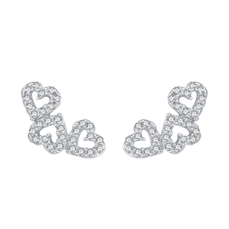 Product: Wholesale 925 Sterling Silver Zirconia Three Hearts Stud Earrings 40200216