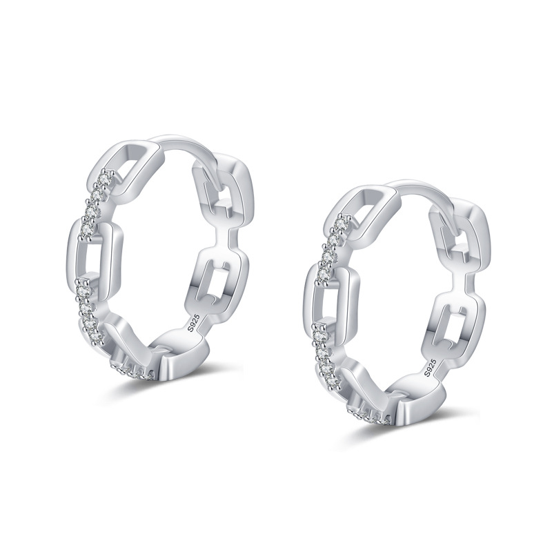 Product: Wholesale 925 Sterling Silver Stylish Chain Zirconia Hoop Earring 60200153.
