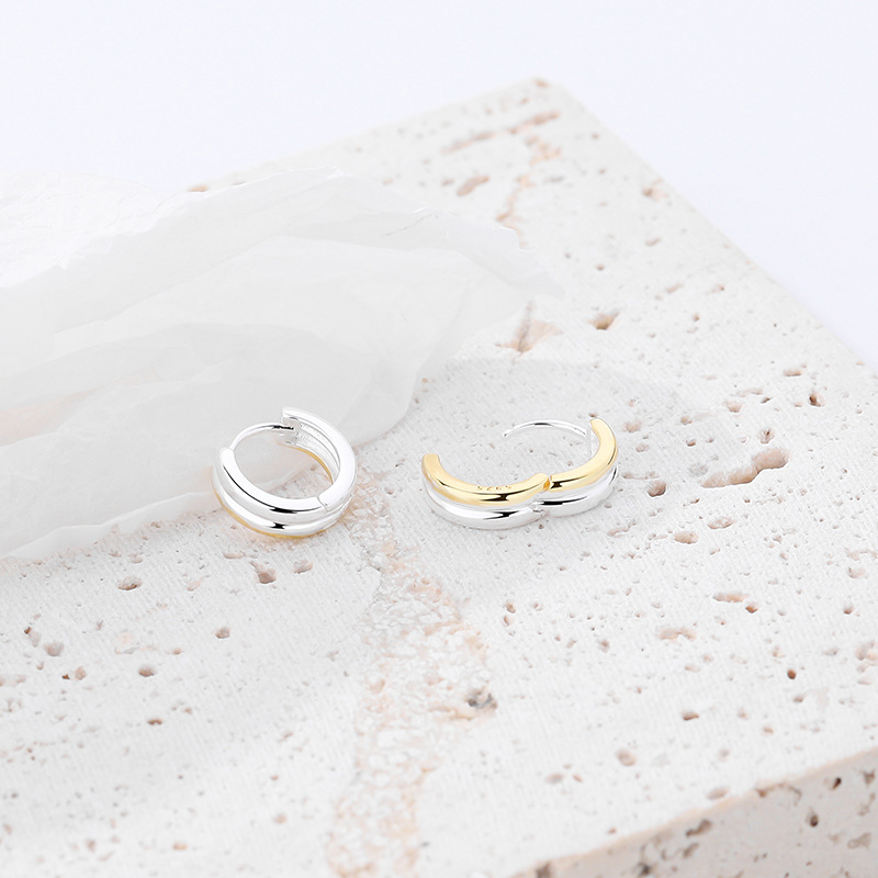 Product: Wholesale 925 Sterling Silver Two Tones Minimalism Hoop Earrings 60200204.