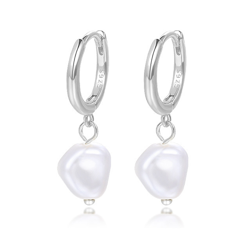 Product: Wholesale 925 Sterling Silver Unique Pearl Beads Charm Hoop Earrings 60300136.