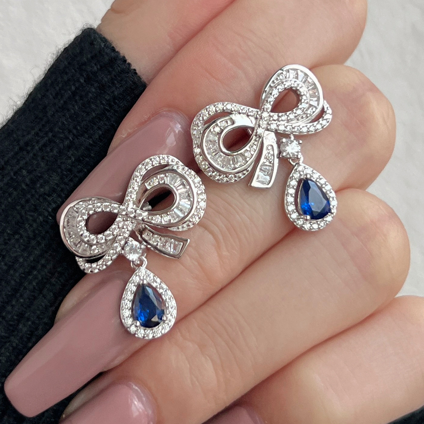 Vintage Bow Teardrop Zirconia Party Stud Earrings 40200390