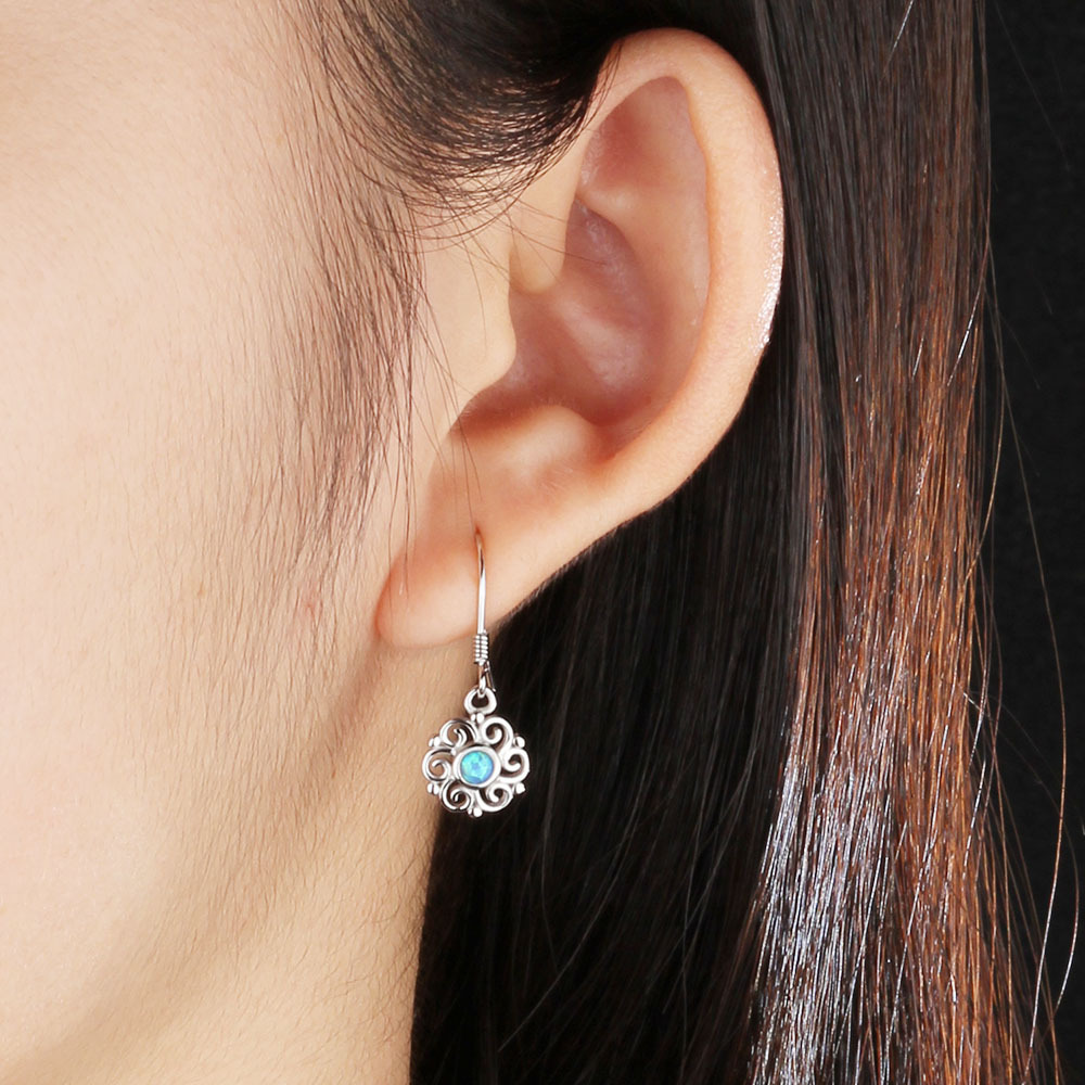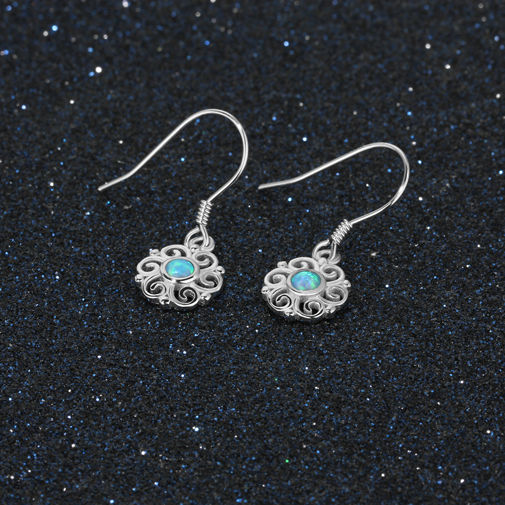 Product: Wholesale 925 Sterling Silver Vintage Flower Opal Dangle Earring 50100029.