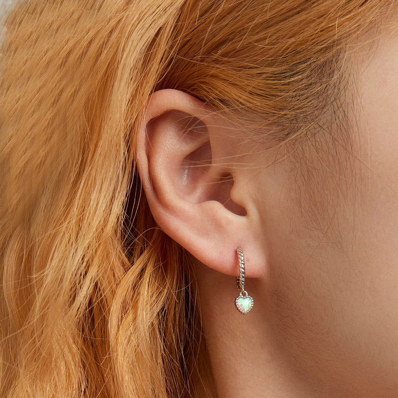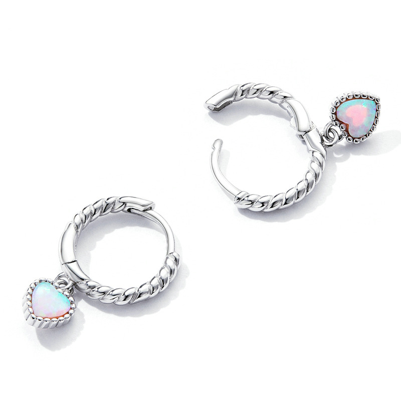 Product: Wholesale 925 Sterling Silver Vintage Heart Opal Hoop Charm Earrings 60300088.