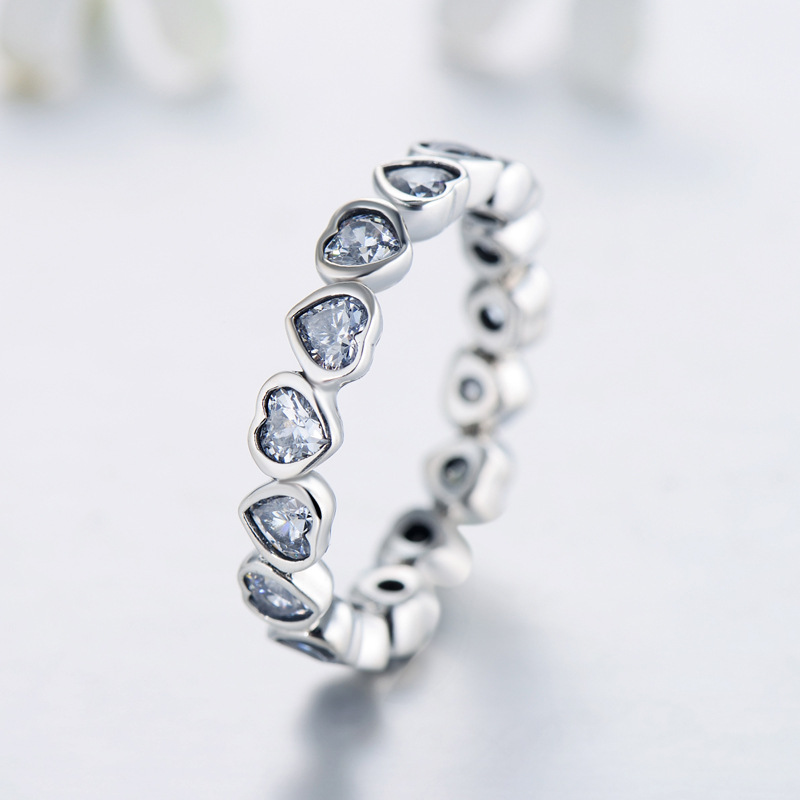 Product: Wholesale 925 Sterling Silver Vintage Hearts Zirconia Band Ring 70100149.