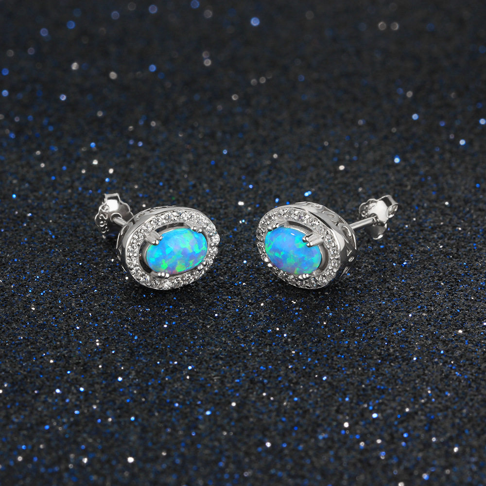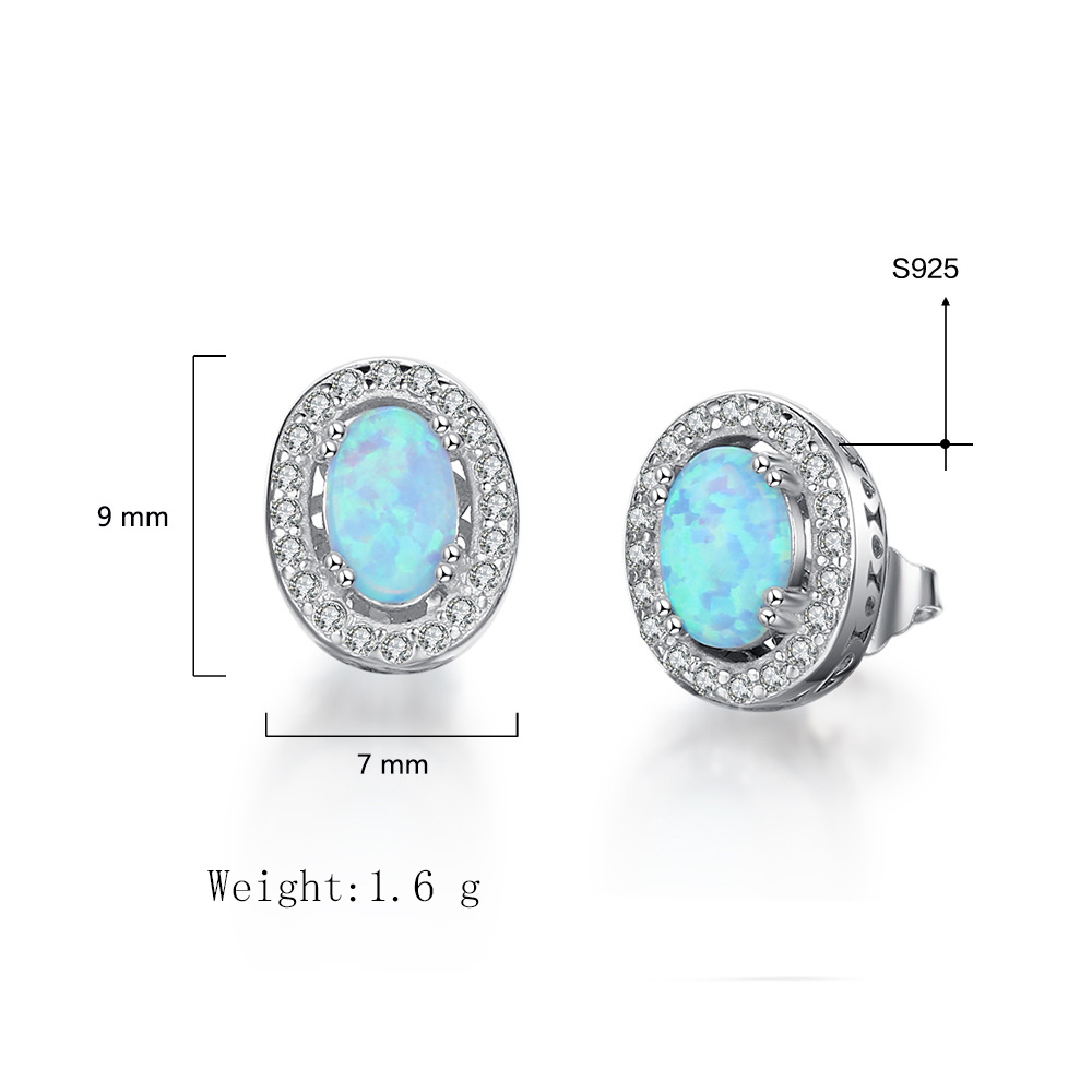 Product: Wholesale 925 Sterling Silver Vintage Oval Blue Opal Stud Earring 40200255.