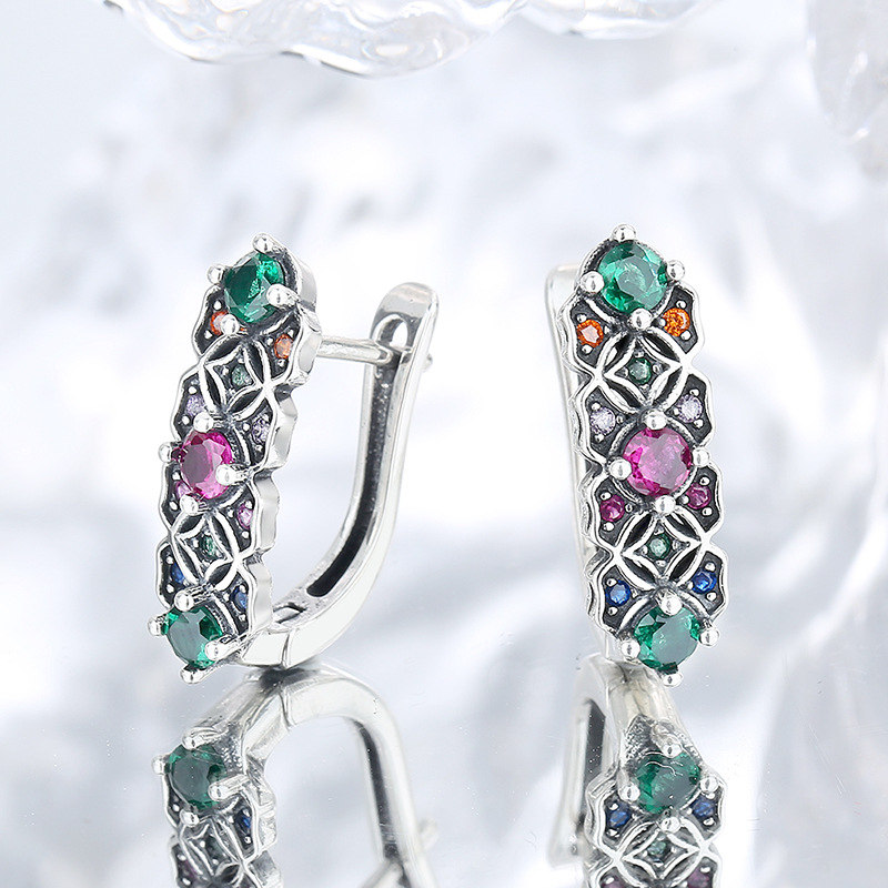 Product: Wholesale 925 Sterling Silver Vintage Rainbow Zirconia Clip Hoop Earrings 60200053.