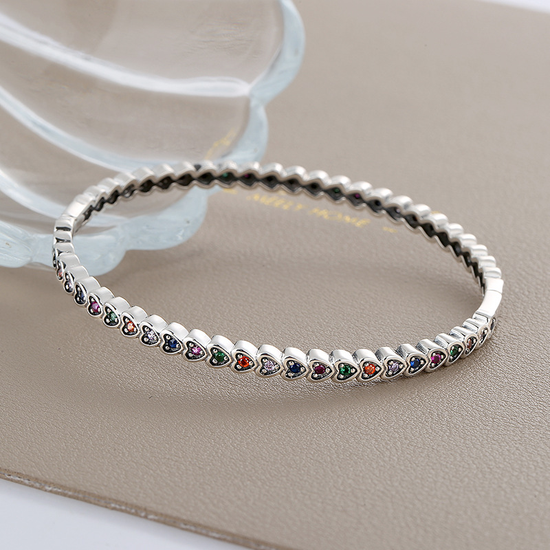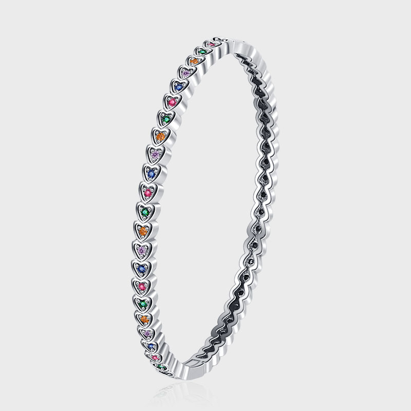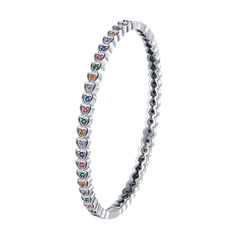 Product: Wholesale 925 Sterling Silver Vintage Rainbow Zirconia Heart Bangles 100200012.