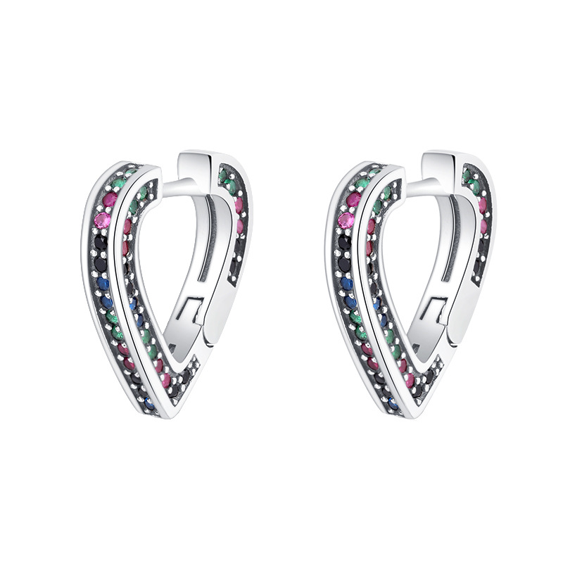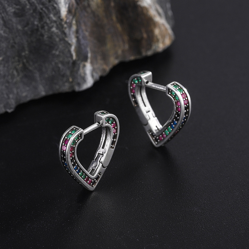 Product: Wholesale 925 Sterling Silver Vintage Rainbow Zirconia Heart Hoop Earrings 60200079.