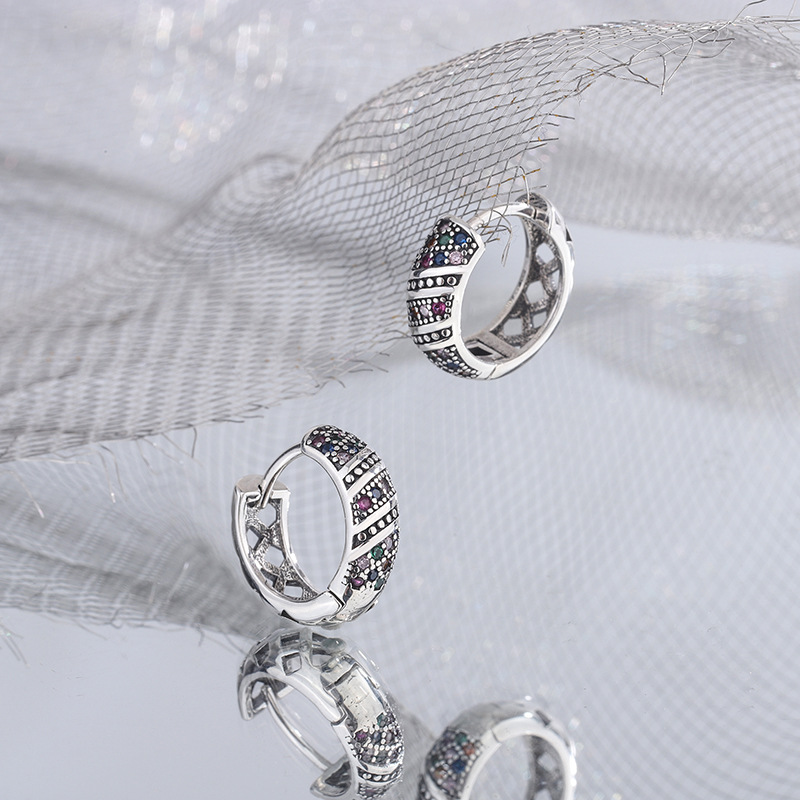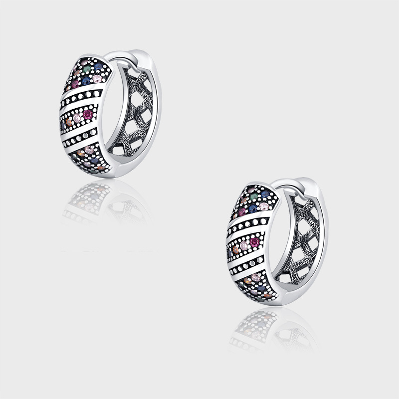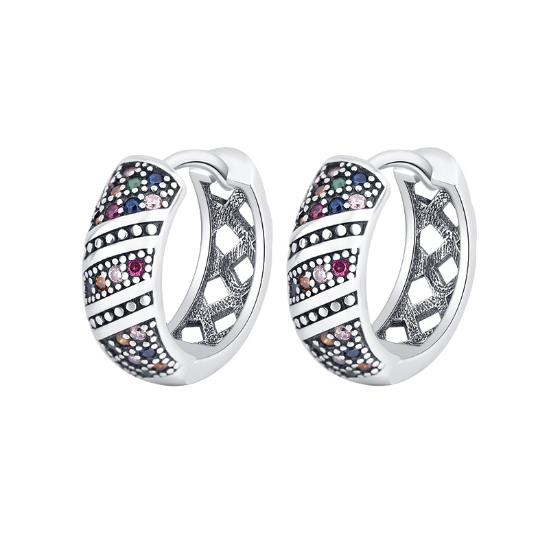 Product: Wholesale 925 Sterling Silver Vintage Rainbow Zirconia Linear Hoop Earrings 60200085.