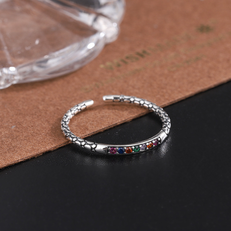 Product: Wholesale 925 Sterling Silver Vintage Rainbow Zirconia Simple Open Rings 70400040.