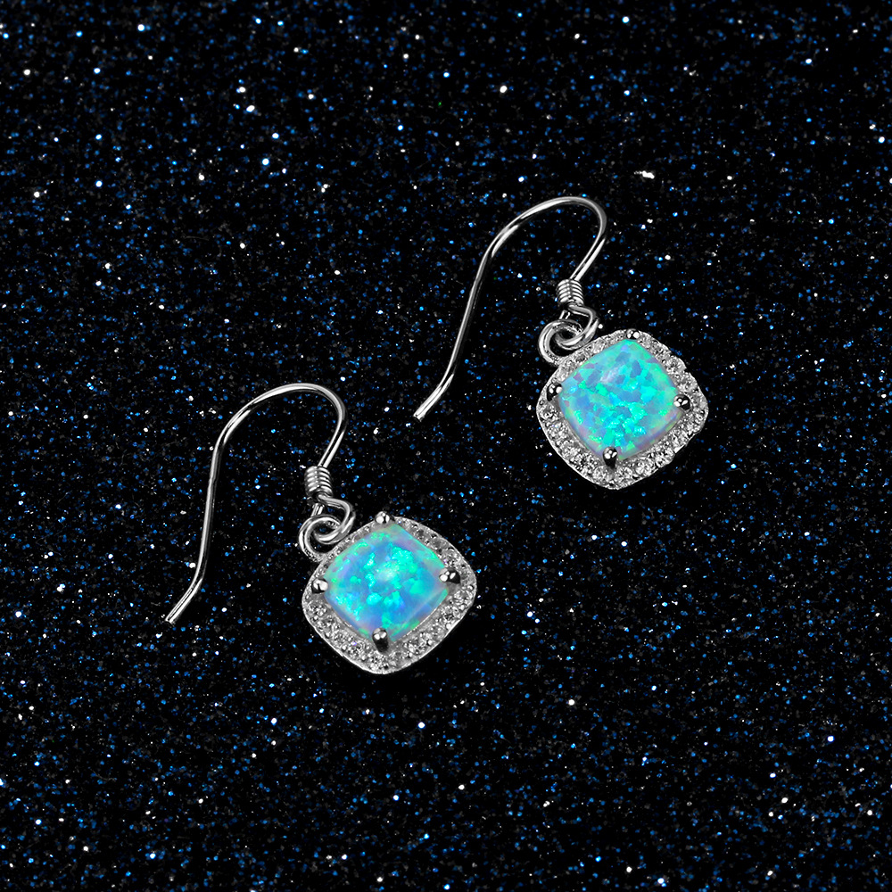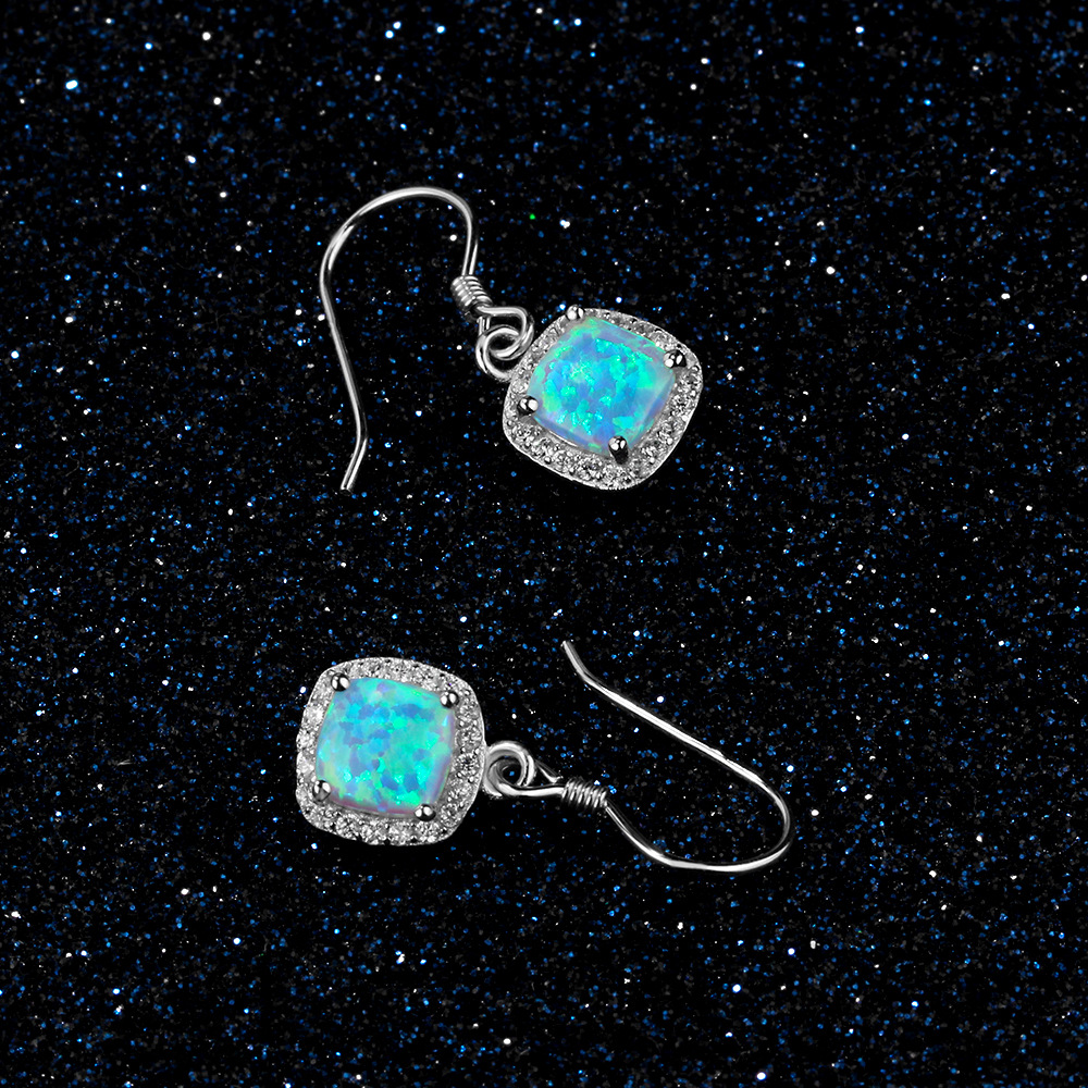 Product: Wholesale 925 Sterling Silver Vintage Zirconia Blue Opal Dangle Earring 50100024.
