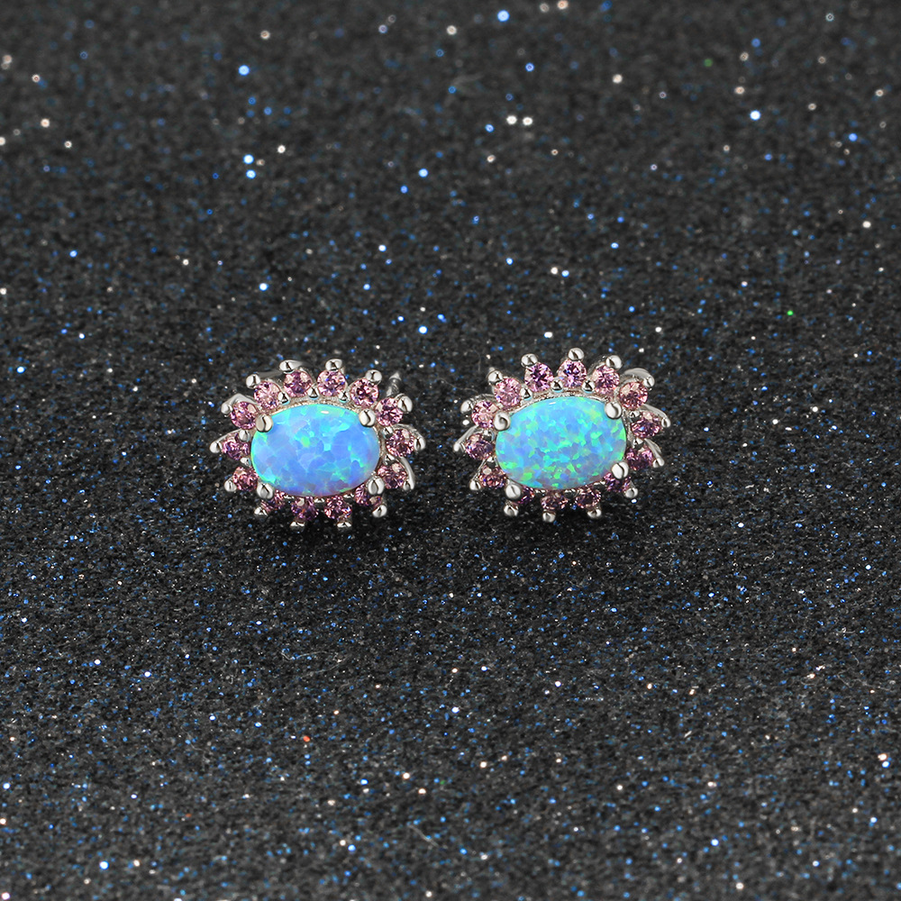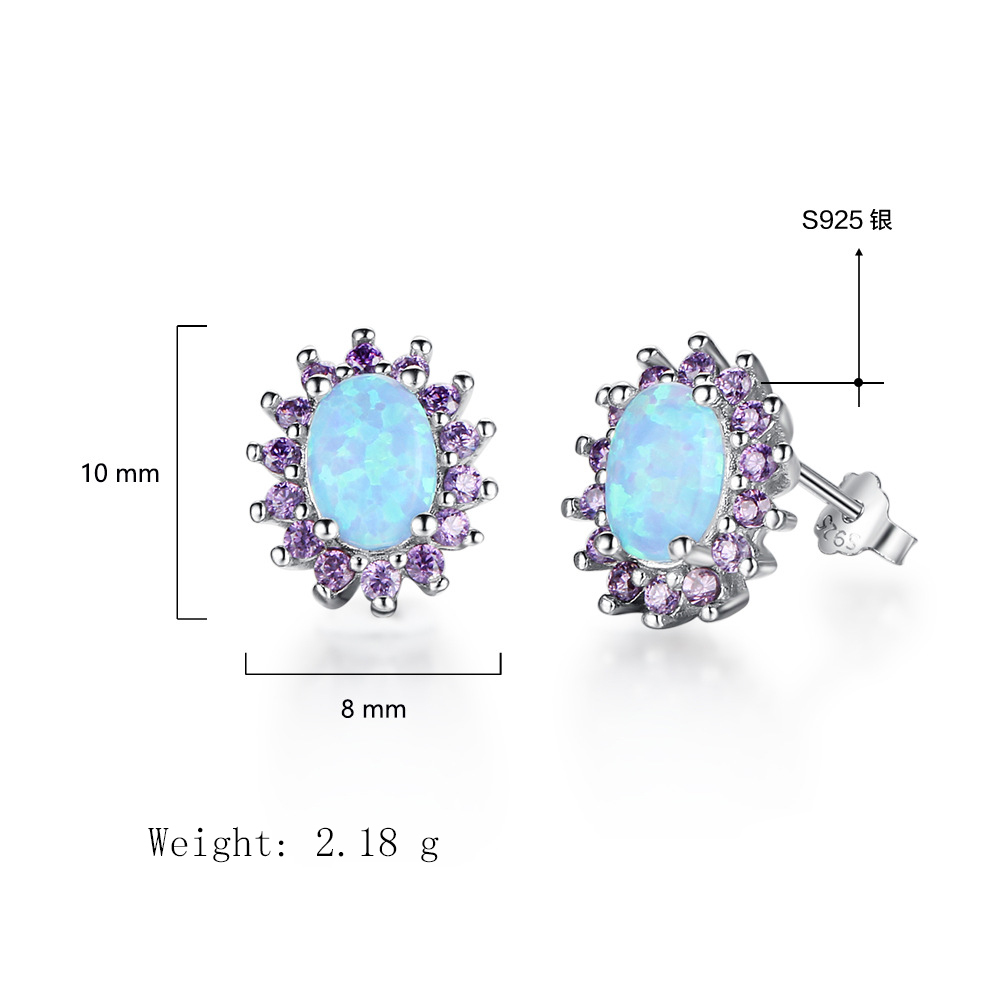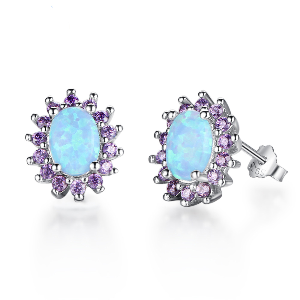 Product: Wholesale 925 Sterling Silver Vintage Zirconia Oval Opal Stud Earring 40700027.