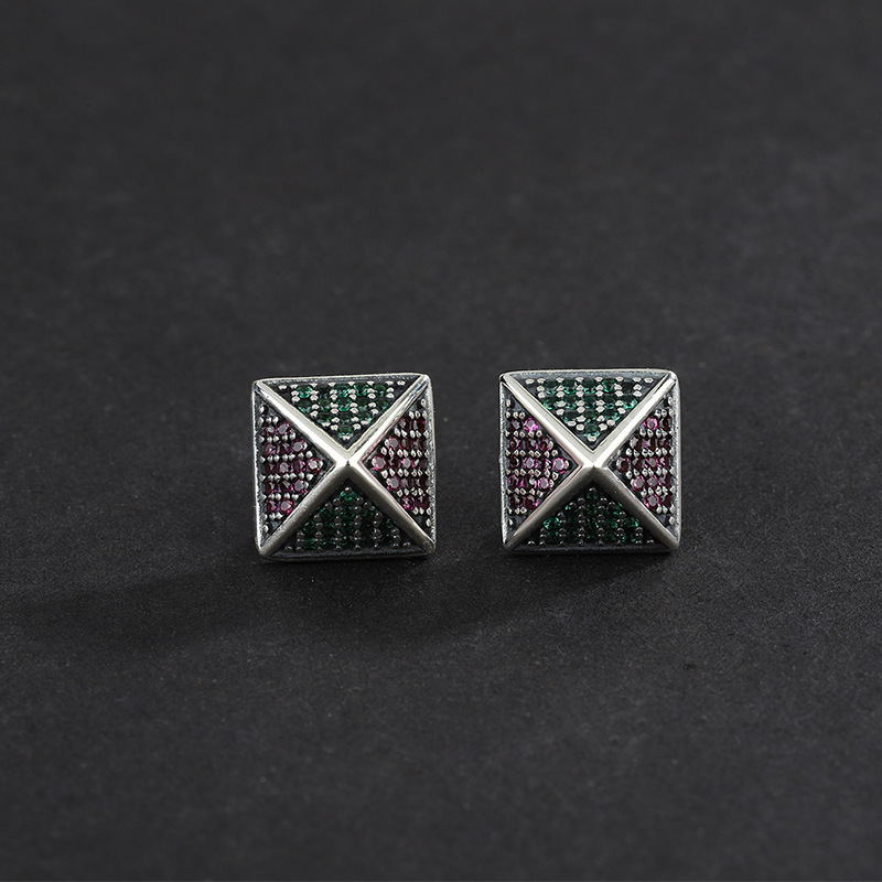 Product: Wholesale 925 Sterling Silver Vintage Zirconia Pyramid Stud Earrings 40200237.