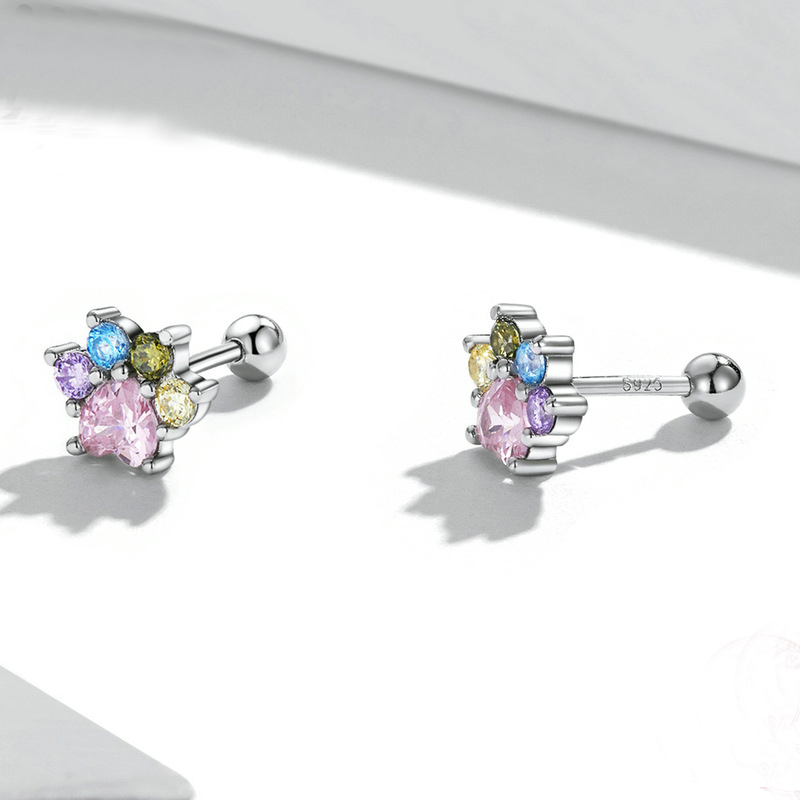 Product: Wholesale 925 Sterling Silver Zirconia Animal Footprint Screw Back Earrings 40600009.